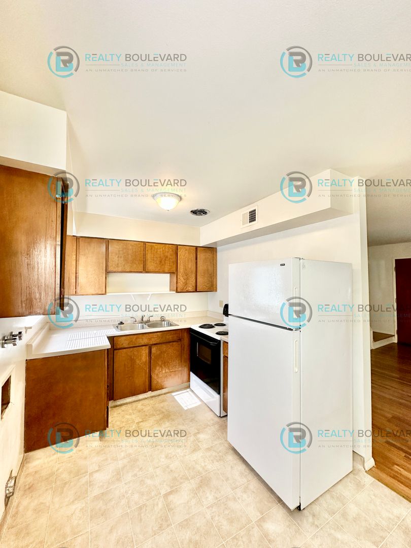 The unique two-story design maximizes space and functionality, with beautiful wood floors throughout adding a touch of elegance and warmth to every room. The well-equipped kitchen features a refrigerator, stove, and oven, ready for your culinary adventures, adjoined by the dining room. Washer and dryer hookups are also available for your convenience.